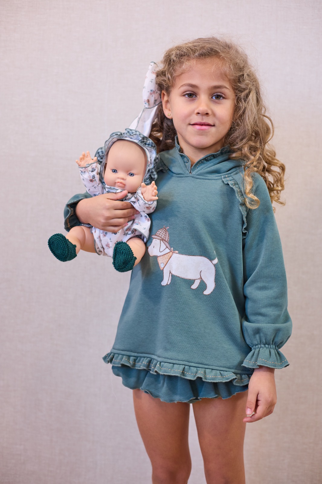 Conjunto de felpa verde de sudadera y braguita volantes